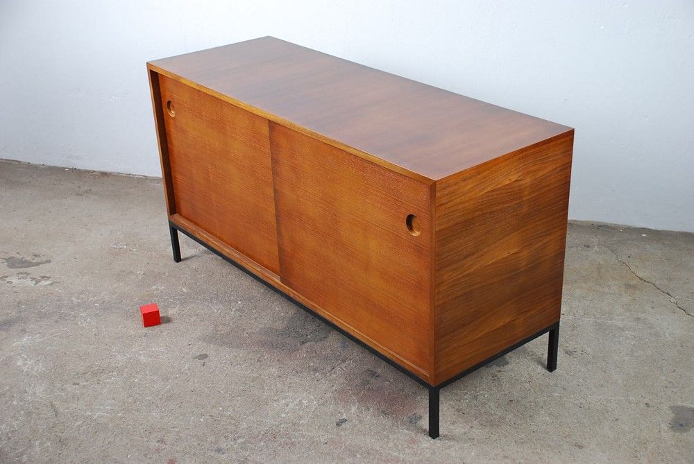 Sehr elegantes Sideboard mit Nussbaumfurnier und 2 Schiebetüren. Minimale altersgemäße Gebrauchsspuren sind vorhanden.